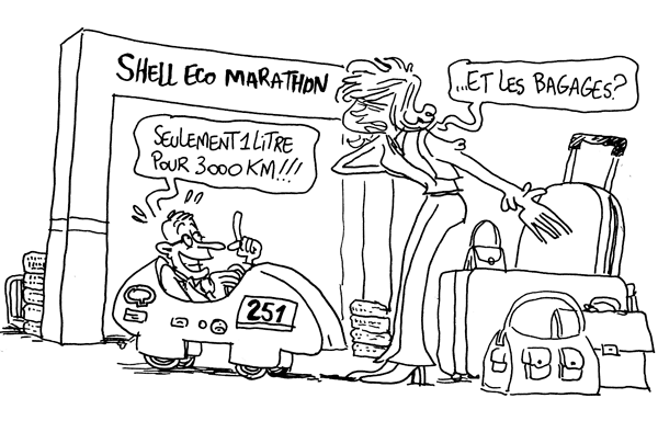 « To design, build and drive a vehicle using the least amount of energy: that is the Shell Eco–marathon challenge! » La course avait lieu ce dimanche dans le Sud de la France. Dessin pour l’Echo.