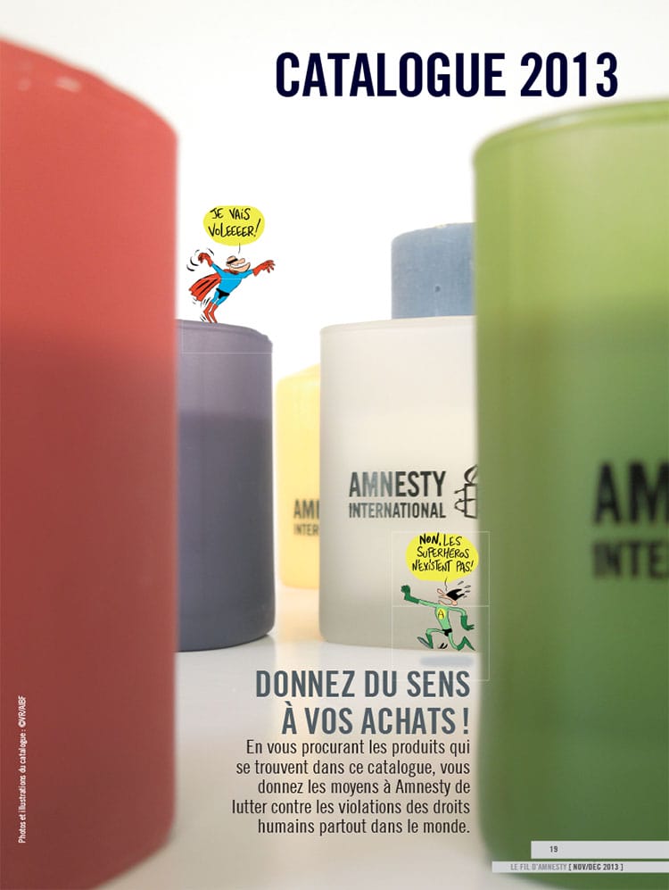 Illustrations du catalogue d’Amnesty International 20 Sep 2013 | Le dessin, outil de communication Dessins entièrement réalisés sur Procreate sur iPad. Couverture du catalogue de fin d’année d’Amnesty