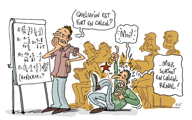 Calcul rénal 27 Mar 2007 | Dessin de presse, En Marche, Santé Illustration sur le calcul rénal ou lathiase urinaire pour le journal En Marche. Voir d’autres illustrations de presse de Vincent RIF