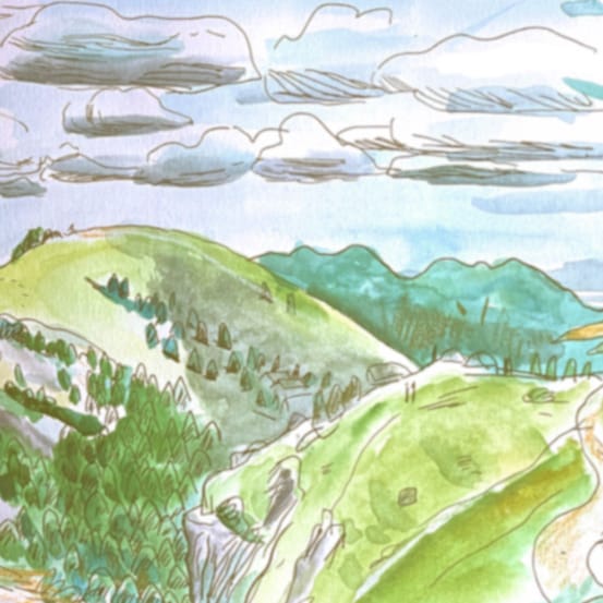 Aquarelle du Mont Hohneck. Depuis le début de la ballade que mon vertige m’empêche de faire.
