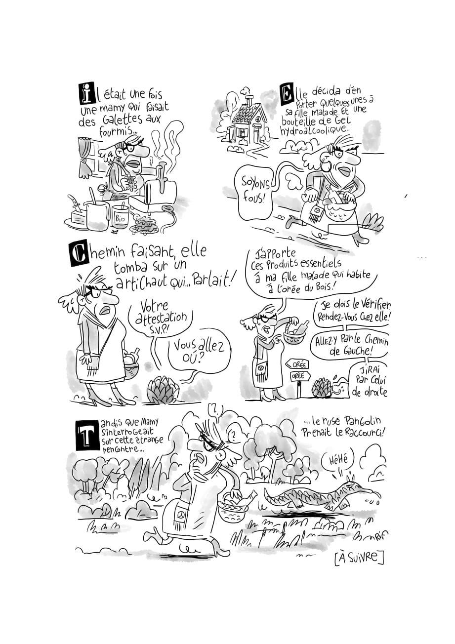 Conte du COVID-19 16 Avr 2020 | BD, Coronavirus Conte du chaperon rouge à la sauce du COVID-19. Planche de BD extraite d’un carnet d’un illustrateur en confinement.