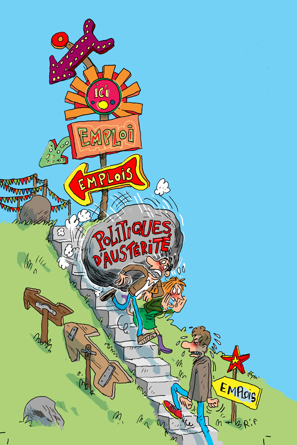 L’emploi face aux politiques d’austérité en Belgique 22 Nov 2015 | Couvertures, Dessin de presse, Divers presse, Économie, Politique belge Dessin de couverture du magazine Essor, édité par l’Interfédé en décembre 2015