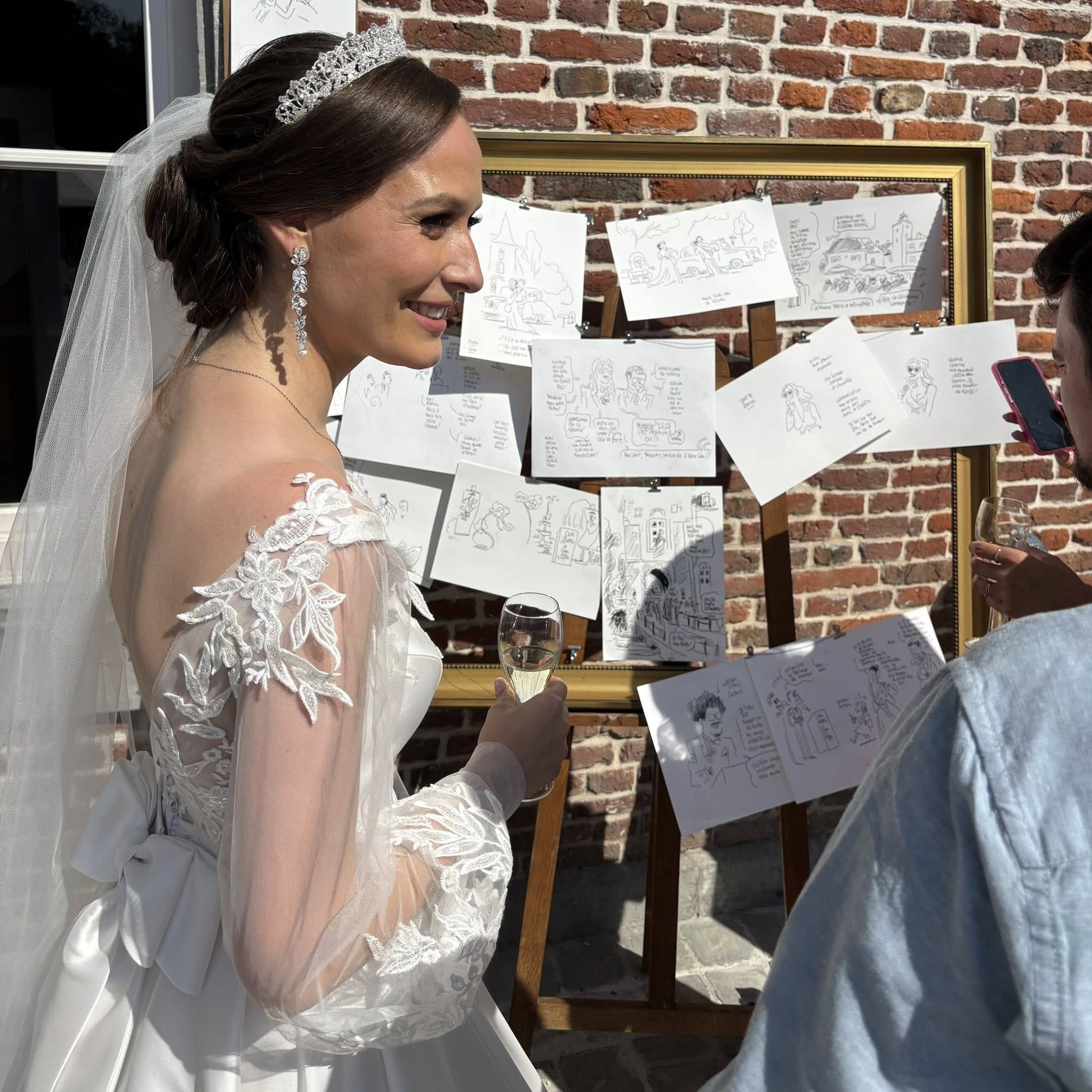 À la fin de ma prestation, je laisse les dessins originaux sur place pour que les invités puissent les regarder et en discuter. Mais aussi pour que les invités du brunch revivent les grands moments du mariage ou les anecdotes manquées.