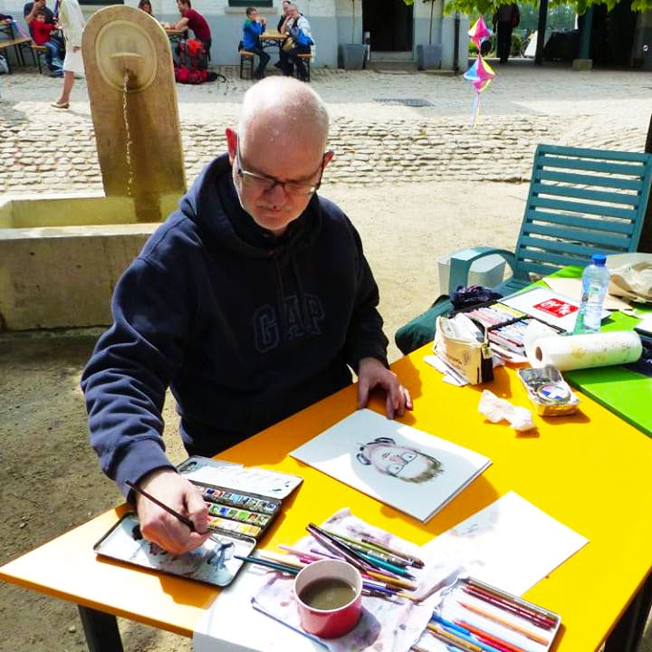 Contactez mail Serge Dehaes ou Vincent Rif pour réserver votre portrait ou celui d’un proche à l’aquarelle sur du papier d’art. Nous proposons différents formats, du standard A4 aux grands formats. L’encadrement et la livraison postale sont également disponibles. Vos dessins seront envoyés bien protégés.