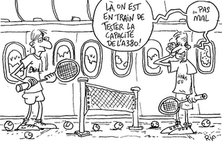 Essai de l’Airbus A380 5 Sep 2006 | Dessin de presse, Économie, Illustrations pour L'Echo Dessin pour le quotidien belge l’Echo
