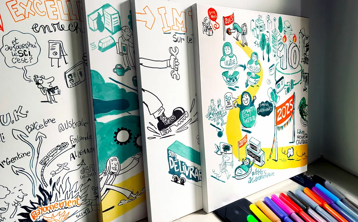 Le Smart City Institute (SCI) célébrait son dixième anniversaire. Pour l’occasion, l’équipe organisait le 5 juin 2025 un évènement s’inscrivant également dans le cadre de l’année de l’Art d’entreprendre à HEC Liège. Lors de cette soirée, une fresque a été dévoilée. Elle témoigne de son engagement pour un avenir plus durable et intelligent. Elle célèbre aussi l’histoire, l’identité et l’évolution du Smart City Institute à travers une décennie de recherches.