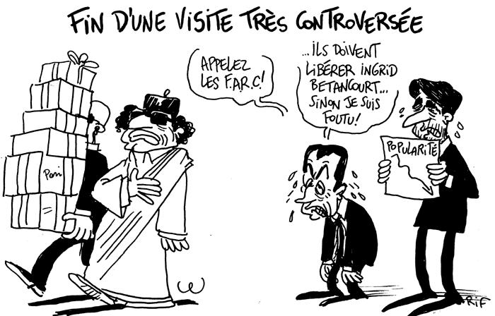 Fin de la visite de Kadhafi en France 18 Déc 2007 | Dessin de presse, Illustrations pour L'Echo, Politique française Dessin pour l’Echo du 15 décembre.