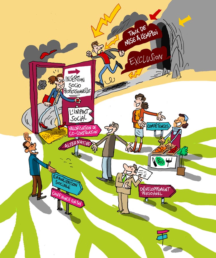 Illustration de couverture de l’Essor N°88 consacré à l’impact de l’insertion socio-professionnelle.