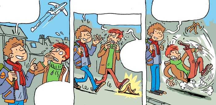 La banane 2 Mar 2012 | BD, Jeunesse Petit strip pour les Editions Averbode. Phylactères complétés par la rédaction de Averbode.