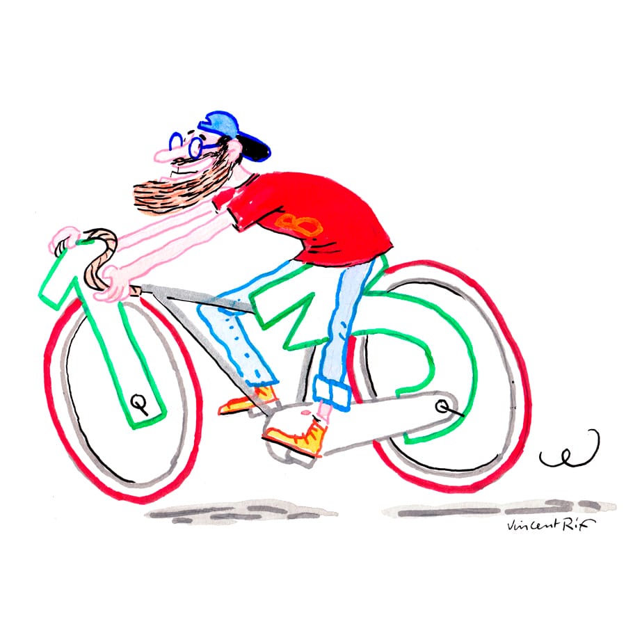 Vincent Rif expose du 21 septembre 2018 au 7 juin 2019 ses cyclistes. De grands aquarelles sur papier d’art 300 gr, format A1.