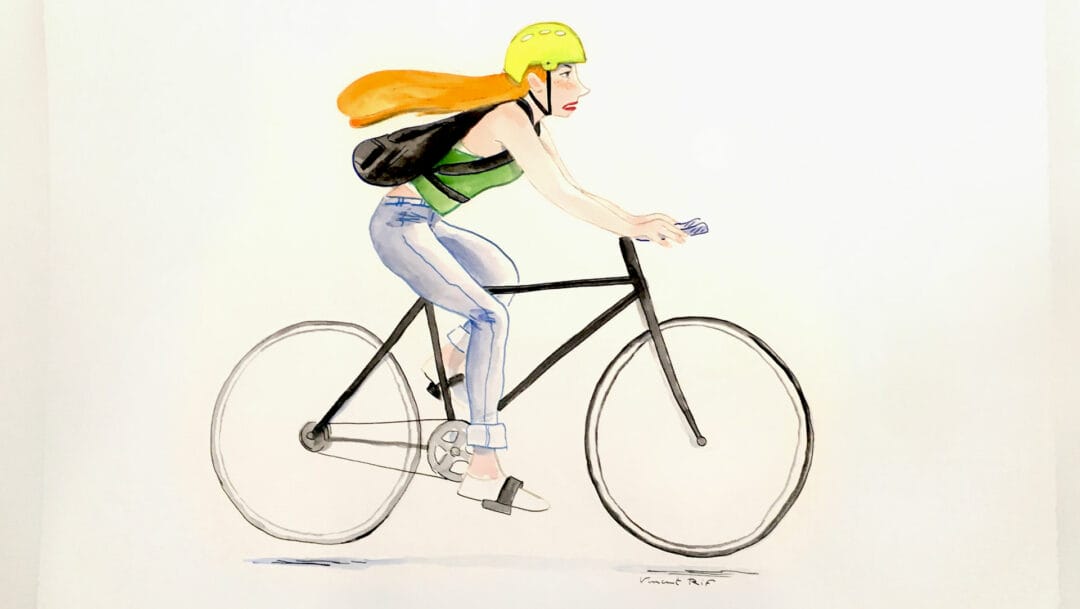 Vincent Rif expose du 21 septembre 2018 au 7 juin 2019 ses cyclistes. De grands aquarelles sur papier d’art 300 gr, format A1.