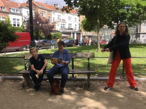 « Mais pourquoi Flagey ? » Parce que Philippe Geluck a commencé sa carrière avec Lolipop, une émission culte de ma jeunesse. Une émission de la RTBf qui avait ses locaux sur la place Flagey. Ixelles est aussi la commune sur laquelle se situent les studio de Geluck. Et c’est aussi, selon moi, un des plus beaux lieux de Bruxelles où il y a beaucoup de bancs publics (où la famille Rif a pris la pose pour mon projet).