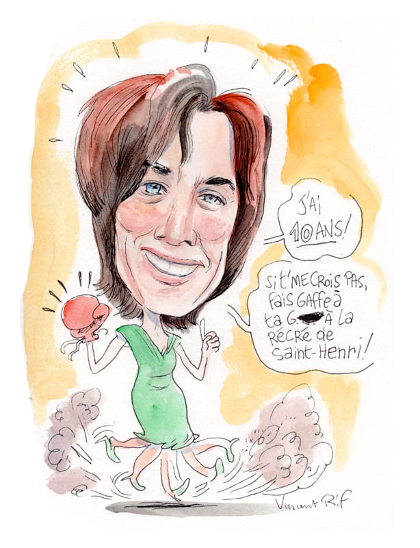 Portrait-caricature (aquarelle et encre de Chine) pour une amie qui fêtait ses… 36 ans, je crois. D’après la chanson de Alain Souchon.