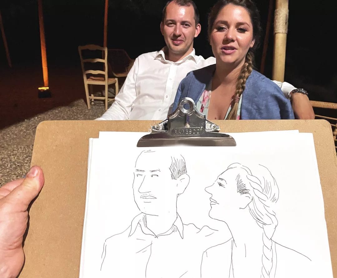 Mais ce n’est pas tout. En plus des portraits de couple, je propose également des animations en portraits individuels pour les événements d’entreprise. Que ce soit pour un cocktail professionnel ou une soirée de gala, mes dessins captureront l’essence des personnes présentes.