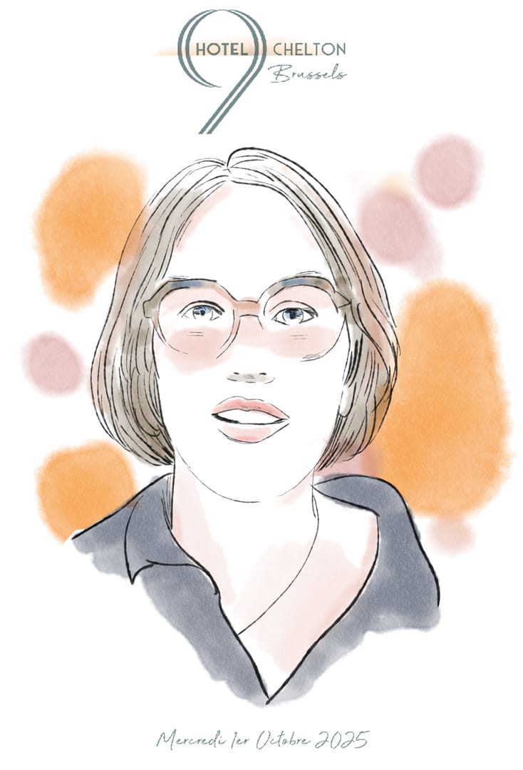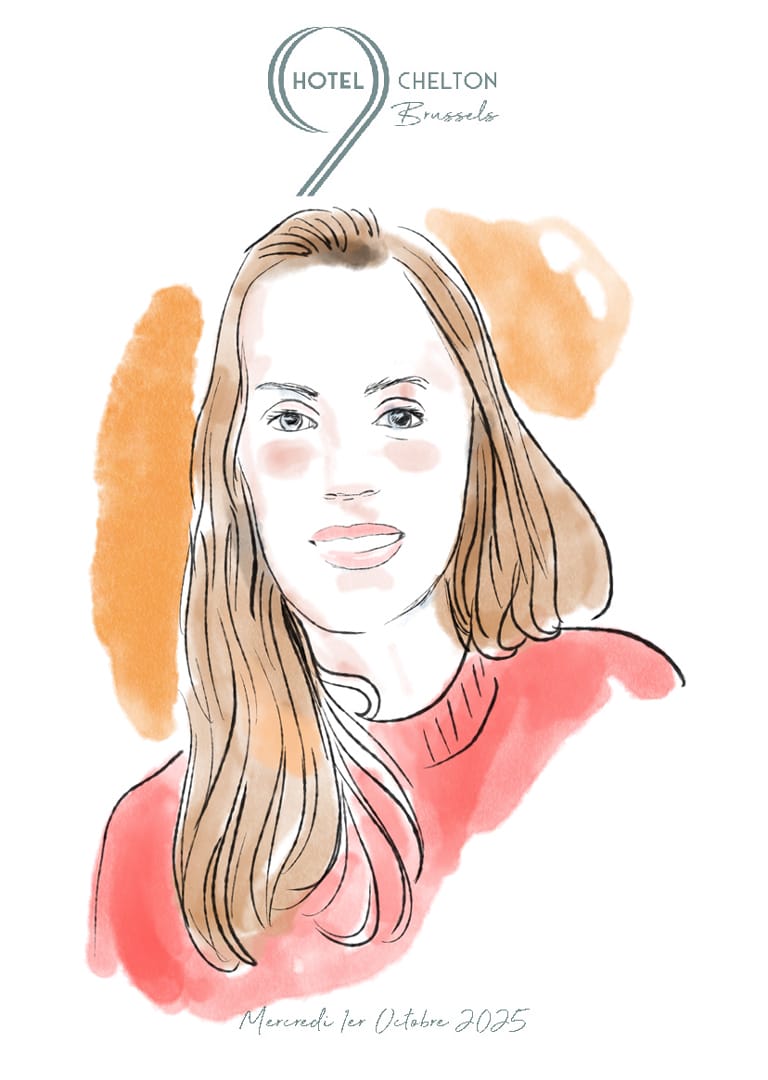 Portraits réalisés sur iPad, imprimés sur carton de format B5 et offerts dans une enveloppe cellophane aux invité sd’une inauguration d’un hôtel de la collection 9Hotel à Bruxelles.