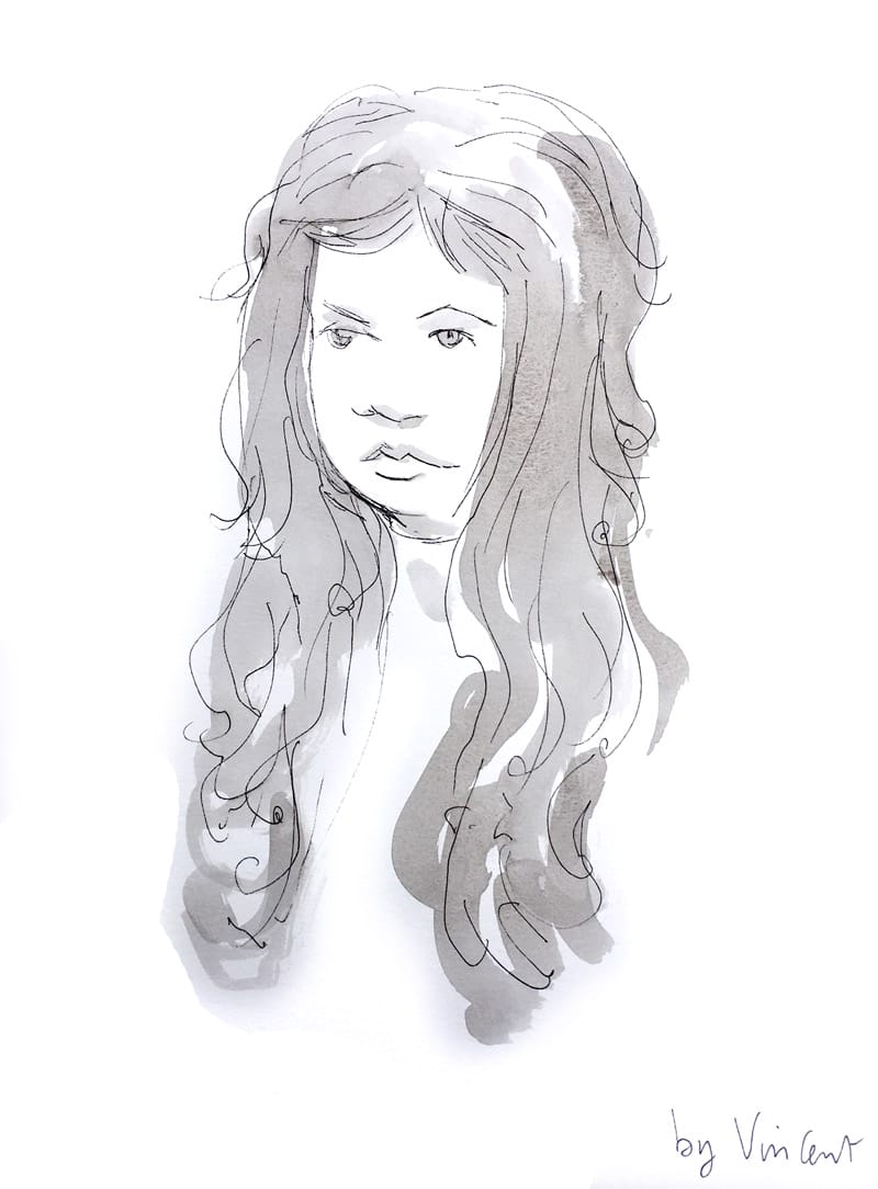Dessins au crayon, feutre fin, feutre pinceau Kuretake sur papier aquarelle 300 gr. Entre 7 et 10 minutes par portraits simple. Un peu plus pour un protrait double.
