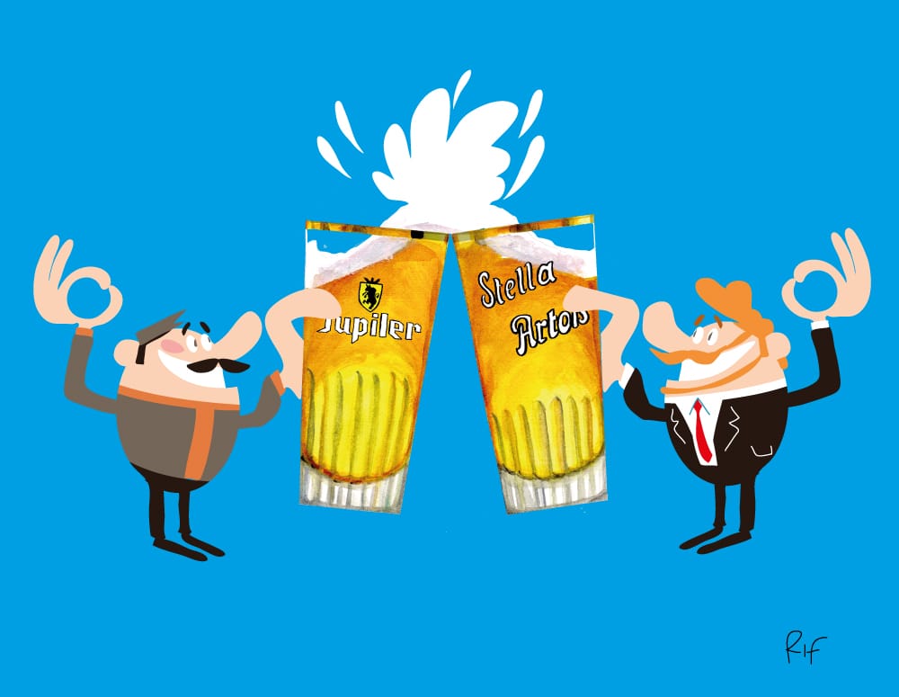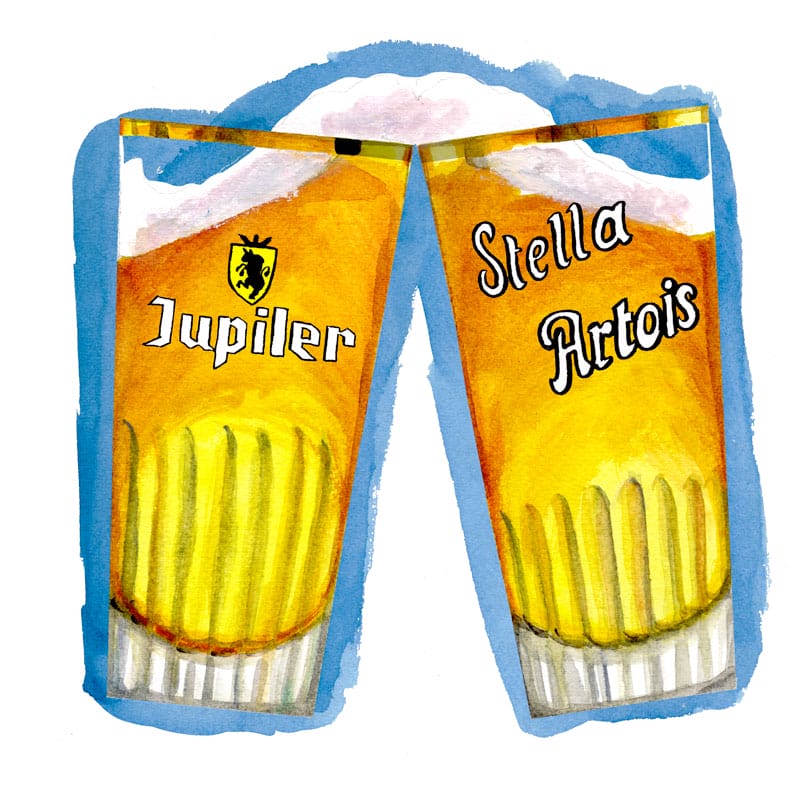 Poposition d’illustration (Adobe Illustrator et aquarelle) sur l’histoire de deux grands brasseurs belges, Jupiler et Stella Artois.