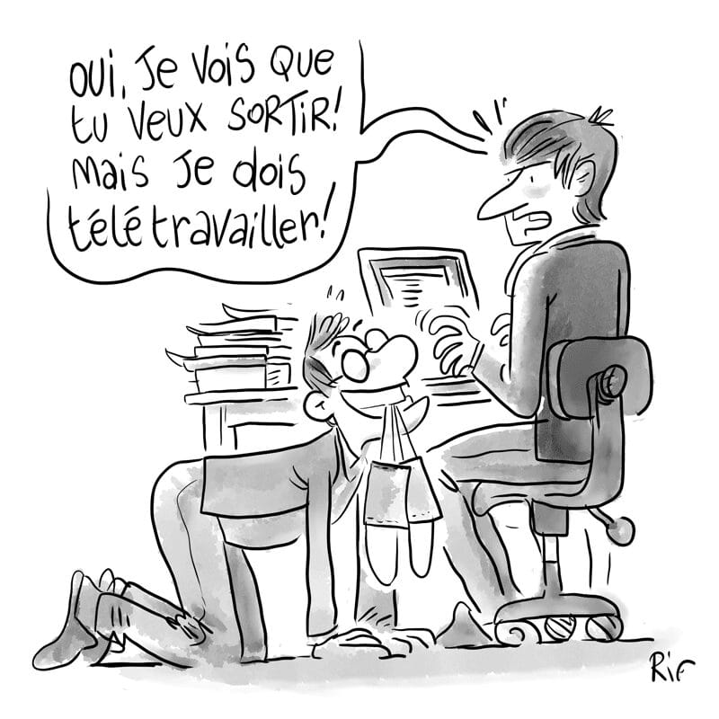 Télétravail et confinememt 1 Avr 2020 | Coronavirus, Société Illustration extrait d’un carnet de dessins inspiré par le confinememt provoqué par le COVID-19.
